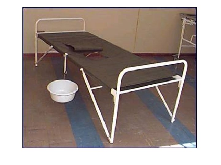 Clinical findings • Watery diarrhea in large volumes (the hallmark of cholera) without cells. • Non-bloody rice-water stool • No fever • Symptoms are referable to the dehydration: the loss of fluid and electrolytes leads to cardiac and renal failure. Acidosis and hypokalemia occur as a result of loss of bicarbonate and potassium in the stool. • Mortality rate without treatment is 40%