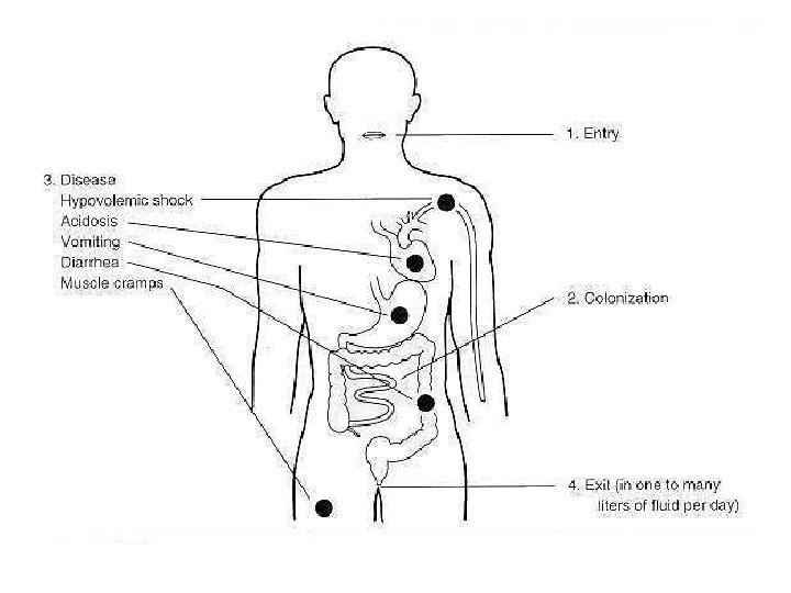 Epidemiology • Infects only humans • Transmitted by fecal contamination of water and food. • Asymptomatic carriers: individuals in the incubation or convalescing period • Recent pandemic: 1960 s-1970 s, over 3 continents (Africa, Europe and Asia): El Tor biotype/ usually Ogawa serotype.