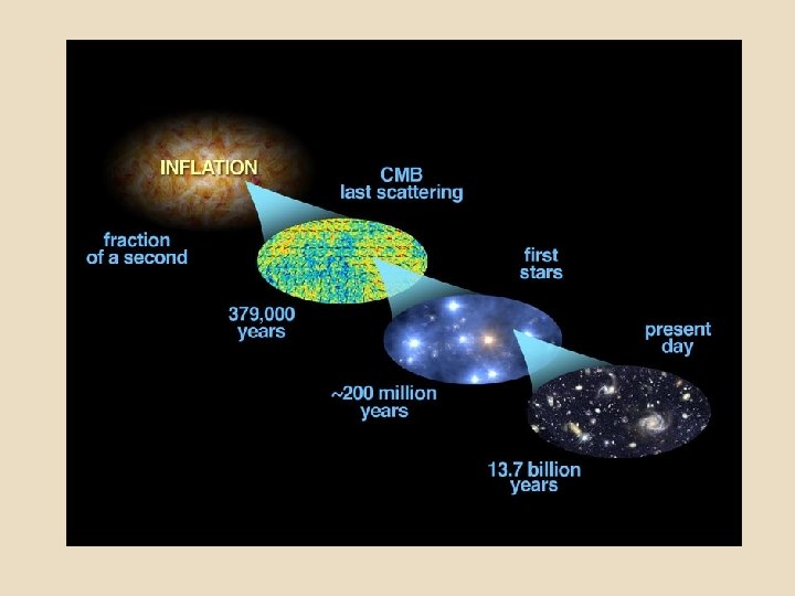 Schematic of Inflation 1019 T (Ge. V/k) R(t) m R t 2/3 R t 1/2 T t-1/2 R e. Ht 1014 T t-1/2 T t-2/3 R t 1/2 T=2. 7 K 10 -13 10 -43 10 -34 10 -31 time (sec) 10