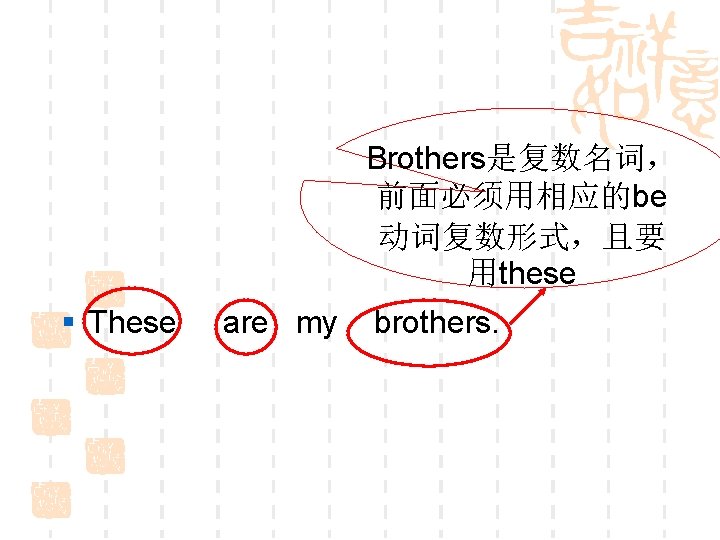 练一练 is VS. are is This___ my sister. is That____ his brother. is She_____ his aunt. is He_____ my uncle. are These____ her parents. are Those____ her friends.