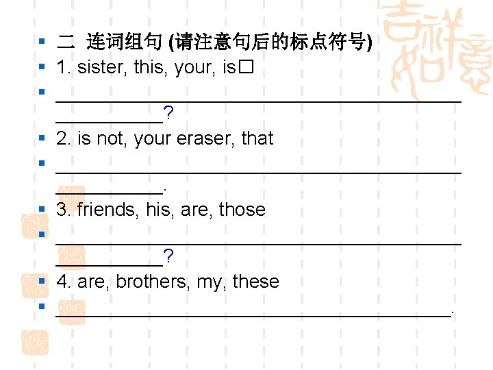 § § 1 2 3 4 Is this your sister ? That is not your eraser. Are those his friends ? These are my brothers.