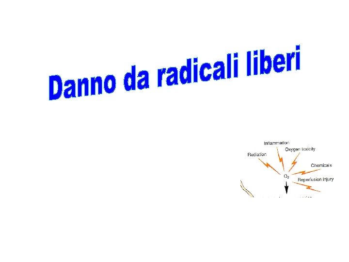 Perossidazione lipidica danno di membrana danno delle pompe ioniche I radicali liberi metionina cisteina Interazione con le proteine degradazione di coenzimi influsso di Ca arginina istidina prolina alterazioni della sintesi proteine Danni al DNA mutazioni ü attivazione di enzimi proteolitici ed ossidazione diretta di polisaccaridi (danno della matrice extracellulare) ü perossidazione delle guaine mieliniche ü alterazione della parete endoteliale