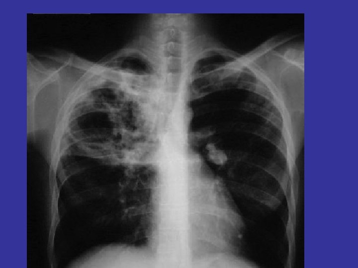 Investigations • Patients suspected of having tuberculosis (TB) q Ø Ø Tuberculin skin testing (Mantoux test, PPD) Intradermal injection of purified protein derivative ( PPD). The response is measured as the amount of induration at 48 -72 hours. The size of induration, rather than erythema, is diagnostic. BCG gives + result q Ø Ø Ø Sputum, bronchial wash or biopsy Acid fast smear ( ZN stain ) cultures require weeks for growth and identification Newer technologies, including ribosomal RNA probes or DNA polymerase chain reaction, allow identification within 24 hours. q Chest radiographs Ø patchy or nodular infiltrate. Ø may be found in any part of the lung, but upper-lobe involvement is most common
