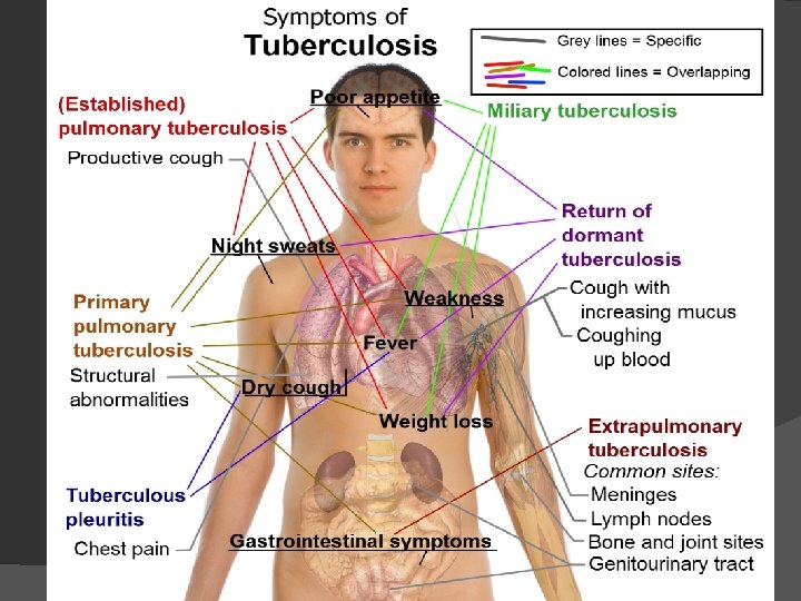 Signs, Symptoms and Diagnosis of TB X-ray • Sputum smear • microscopy Culture •