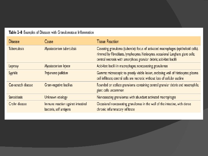 OBJECTIVES AND KEY PRINCIPLES TO BE TAUGHT: Upon completion of this lecture, the student should: � Define Granulomatous inflammation. � Recognize the morphology of granulomas (tubercles) and list the cells found in granuloma along with their appearance. � Identify the two types of granulomas, which differ in their pathogenesis. � Foreign body granulomas � Immune granulomas List the common causes of Granulomatous Inflammation. � Understands the pathogenesis of granuloma formation. �