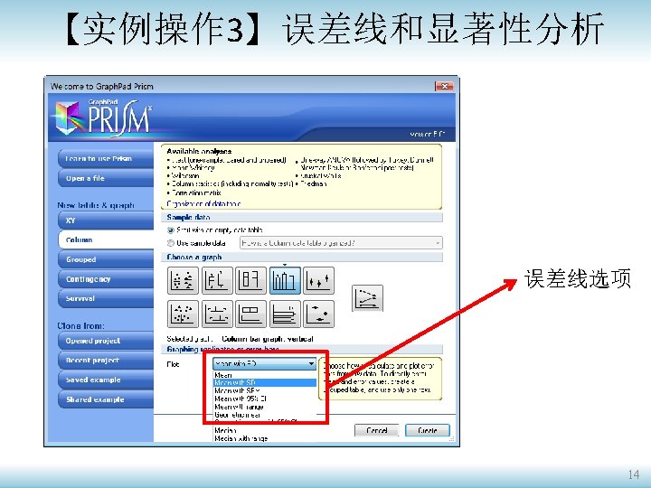 【实例操作 3】误差线和显著性分析 柱形图(Column Bar Graph) 散点图(Scatter Plot) P value P<0. 001 to 0. 05 Wording Extremely significant Very significant Summary *** ** * P>0. 05 Not significant ns 15