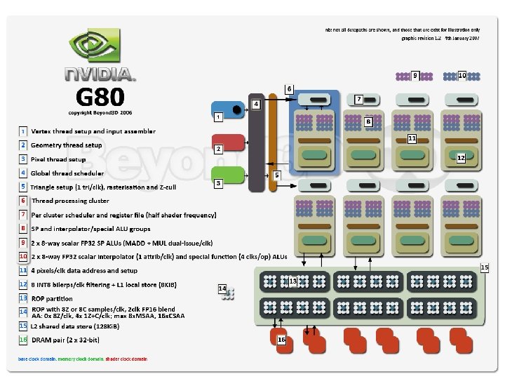 Architecture history Unified shader • Desktop – NVidia Ge. Force 680 – GK 104 (2012) – AMD HD 7970 (2012) • Mobile – Imagination G 6400 (2012) – ARM Mali T 678 (2012) – Qualcomm Adreno 320 (2012) NV Ge. Force 680