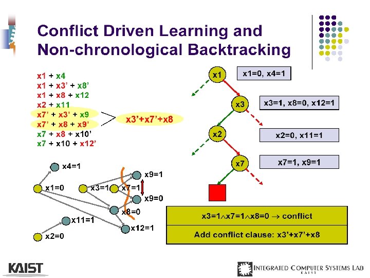 Conflict Clause v Significantly prune the search speace n v Learned clause is useful forever Useful in generating future conflict clauses