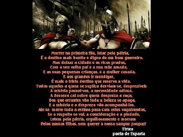 • O espartano era produto de uma rígida educação militar e uma limitada formação intelectual; • Era um guerreiro a serviço do estado até os 60 anos; • Concluindo em Esparta a educação de seus cidadãos baseava-se no treinamento físico, na formação militar e na subordinação da vida individual aos interesses do estado;