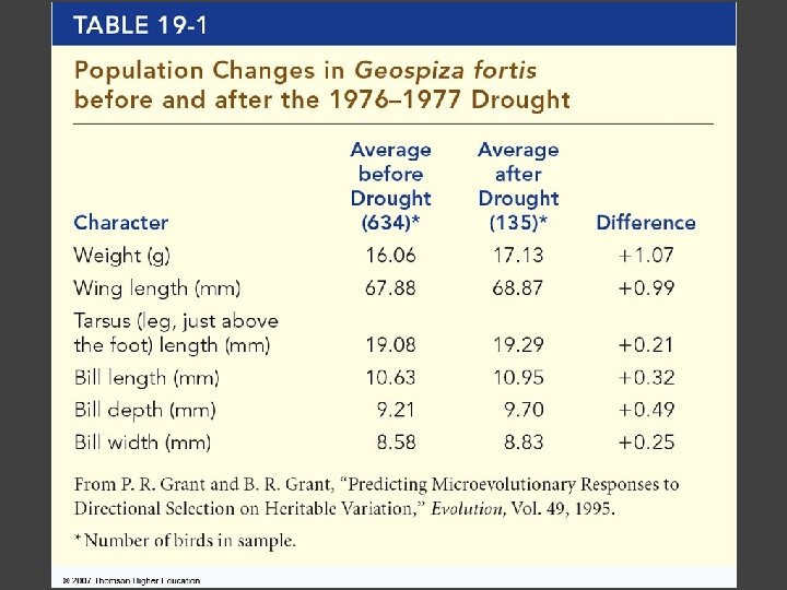 Beak depth of Galapagos finches: environment heterogeneous in time.