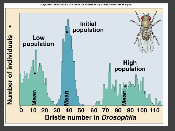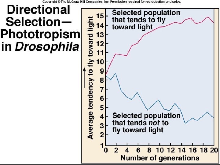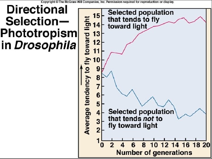Directional Selection: Drosophila : flying to and away from light.