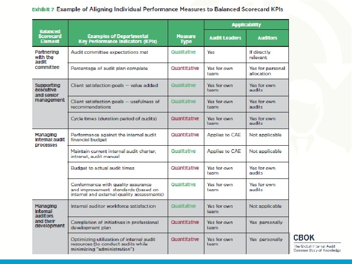 CBOK Research: Bonuses Who Receives Common Criteria • Global average (67%) • Ranges regionally (between 60% and (82%) • Prevalent in large entities, (at 78% for those with more than 10, 000 employees) • Less prevalent with public sector (40%) and not-forprofit organizations (54%) • Personal performance (78%) • Company performance (74%) • Completing the audit plan (36%) • Achieving the budget (20%)