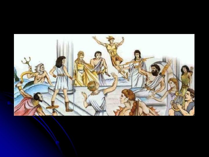 Los dioses eran inmortales y eternamente jóvenes. Su residencia era en el Monte Olimpo, donde Zeus, el más poderoso de ellos, reinaba sobre todos. La imaginación de los griegos atribuyó a los dioses las mismas costumbres de los hombres. Hubo entre ellos parentescos y matrimonios, celos, rivalidades y uniones.