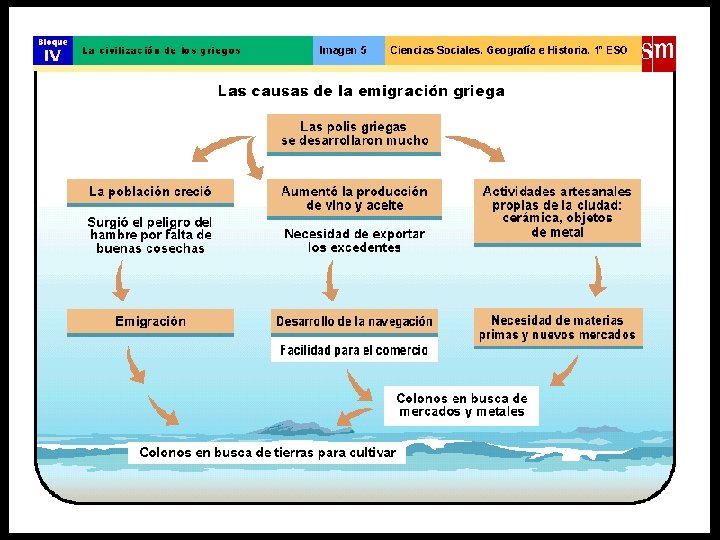 EL TERRITORIO Es una región montañosa con clima mediterráneo y costas muy recortadas. Esas características geográficas hicieron que la comunicación por tierra fuera difícil y que no hubiera demasiadas tierras cultivables, pero al mismo tiempo determinó una buena comunicación por mar y buenos puertos naturales; en definitiva, esa geografía empujó a los griegos al mar, al comercio y a la colonización. Las características especiales del relieve, del clima y de las costas del mundo griego provocaron la importancia del comercio marítimo y de la colonización.