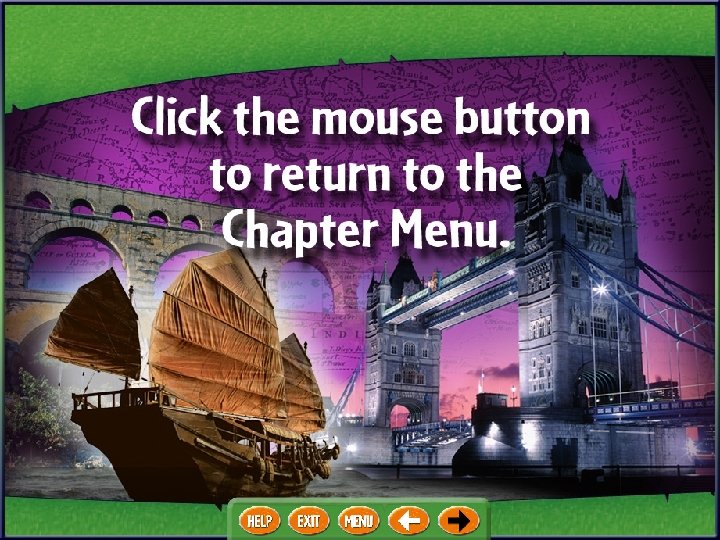 To use this Presentation Plus! product: Click the Forward button to go to the next slide. Click the Previous button to return to the previous slide. Click the Menu button to return to the Chapter Menu. Click the Return button in a feature to return to the main presentation. Click the Exit button or press the Escape key [Esc] to end the chapter slide show. Click the Help button to access this screen. Links to Presentation Plus! features such as the Reference Atlas, Daily Focus Transparencies, and others are located on the left side of the relevant slides.