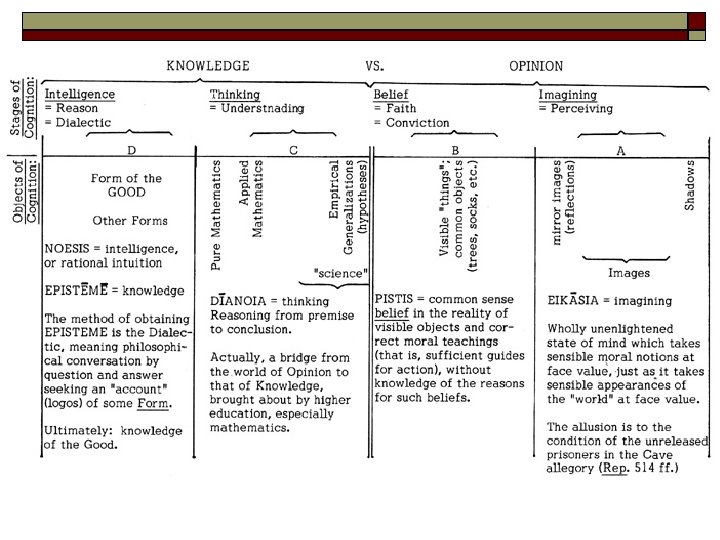 In Plato’s Divided Line, Mathematics falls under the following category: Highest form of true knowledge Second highest form of true knowledge A form of belief, but not true knowledge A form of perception
