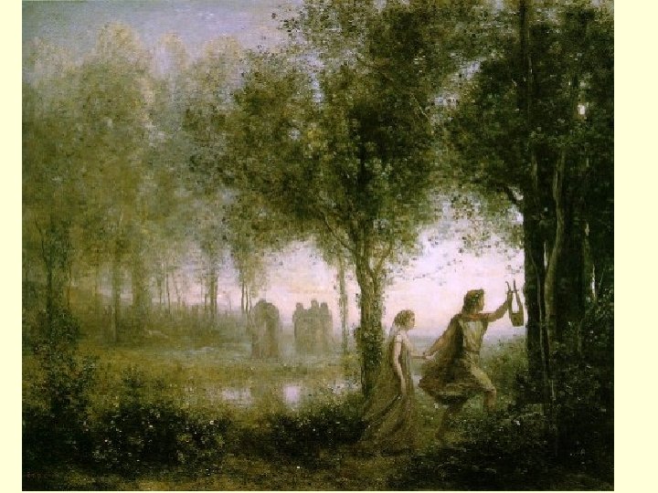 She Can Leave But. . . • Gets permission to take Eurydice out, but he cannot look upon her until they are both completely out of the darkness • He looks back too soon and she is lost forever • He cannot go back a second time • Wanders the Earth and was killed by wild women