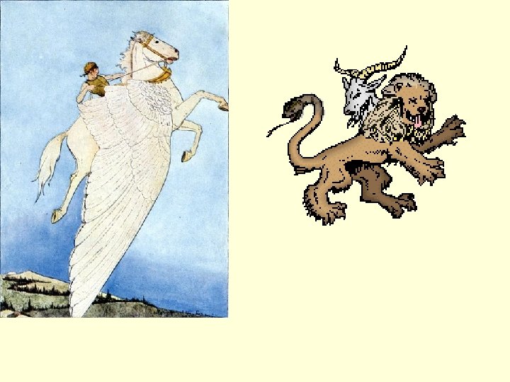 Pegasus and Bellerophon • Athena helps him get the winged horse • Uses a golden bridle to tame him from Athena • Proteus’s wife falls in love with Bellerophon—he refuses her • She tells her husband he has wronged her • Husband sends him to the King of Lycia who sends him on a quest to kill the Chimaera