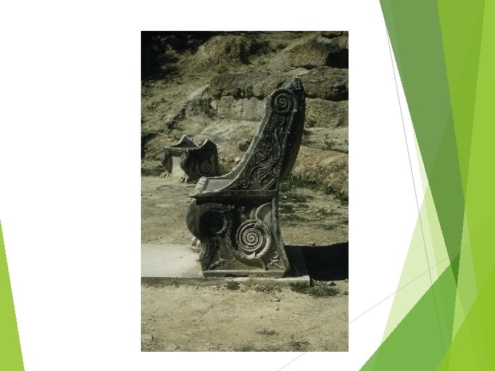 III. Parts of a Greek Theater Prohedria: Greek for front seating; the seat of honor in front of or around the orchestra for priests and dignitaries