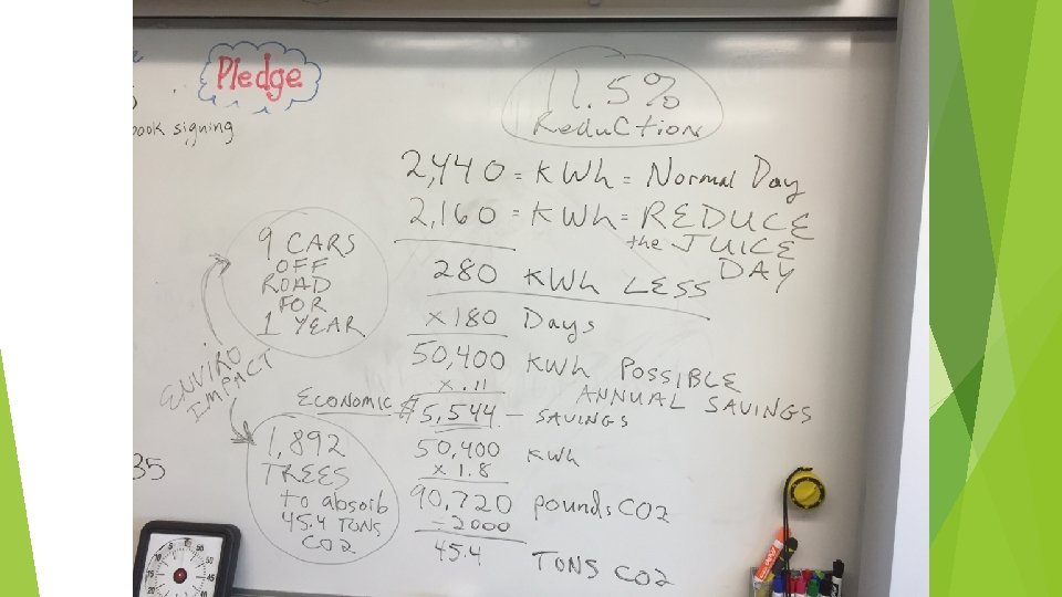 Connecting school based cleaning, recycling and energy with curriculum Chemistry and New Tech Low VOC Cleaning Pounds per Student and Trees Saved Reduce the Juice – Lighting Audit Lots of math! Saves Money and the Planet!
