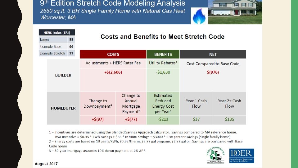 CRITERION 5 – STRETCH CODE • Adoption of BBRS Stretch Code (780 CMR 115. AA) an appendix to the MA State Building Code • This only effects new residential construction and commercial over 100, 000 square feet, not additions or renovations • The Stretch Code must be adopted as a general bylaw amendment within the Town Meeting Warrant and voted on by Town Meeting…. requires a simple majority vote