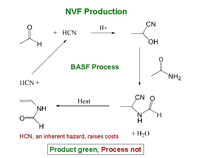 NVF Production BASF Process HCN, an inherent hazard, raises costs Product green, Process not