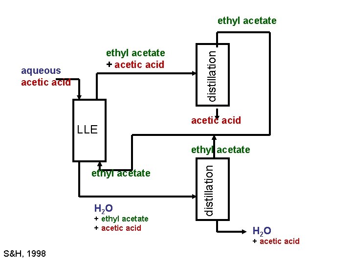 ethyl acetate + acetic acid aqueous acetic acid LLE distillation ethyl acetate acetic acid ethyl acetate H 2 O + ethyl acetate + acetic acid distillation ethyl acetate H 2 O + acetic acid S&H, 1998