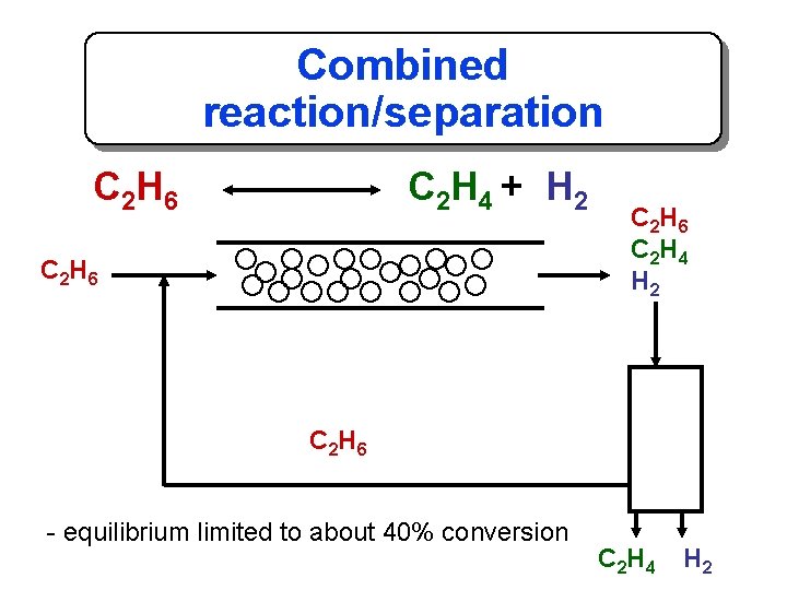Combined reaction/separation C 2 H 6 C 2 H 4 + H 2 C 2 H 6 C 2 H 4 H 2 C 2 H 6 - equilibrium limited to about 40% conversion C 2 H 4 H 2