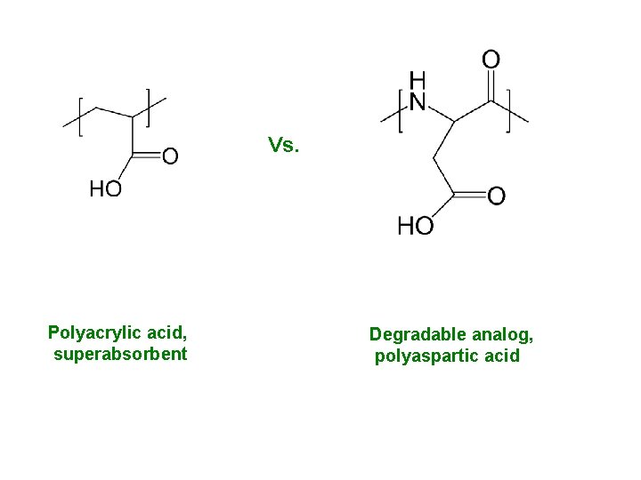 Vs. Polyacrylic acid, superabsorbent Degradable analog, polyaspartic acid
