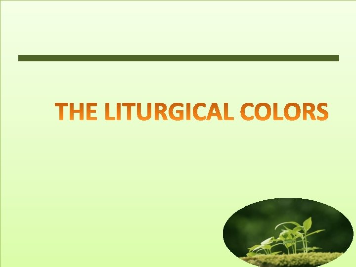 GREEN Green is the symbol of Hope and living vegetation. What Liturgical Season this color is used? It is used during Ordinary Time.