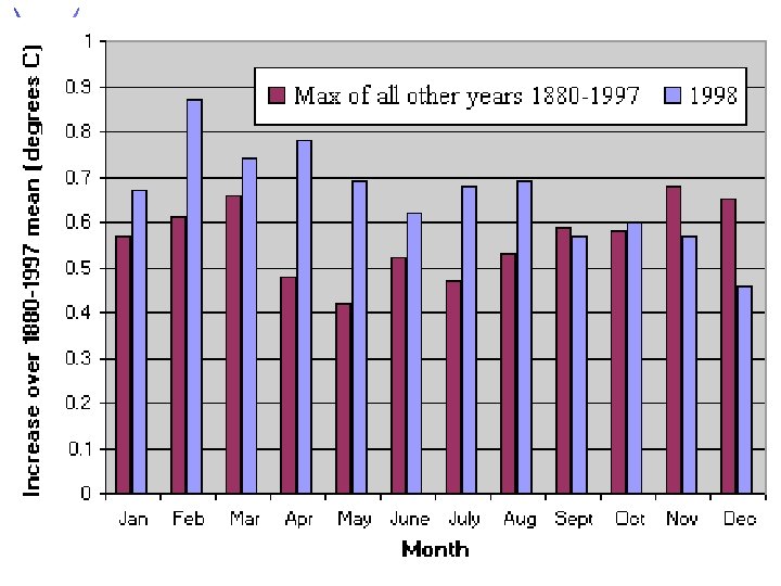 Impacts ä Extreme temperatures ä several serious diseases ä increase air pollution ä increase ozone ground levels ä ground level ozone vs upper atmosphere ozone ä sea level rising at an average rate of 1 to 2 mm/year over the past 100 years ä El Ninos are not caused by global warming. ä they appear to be more intense