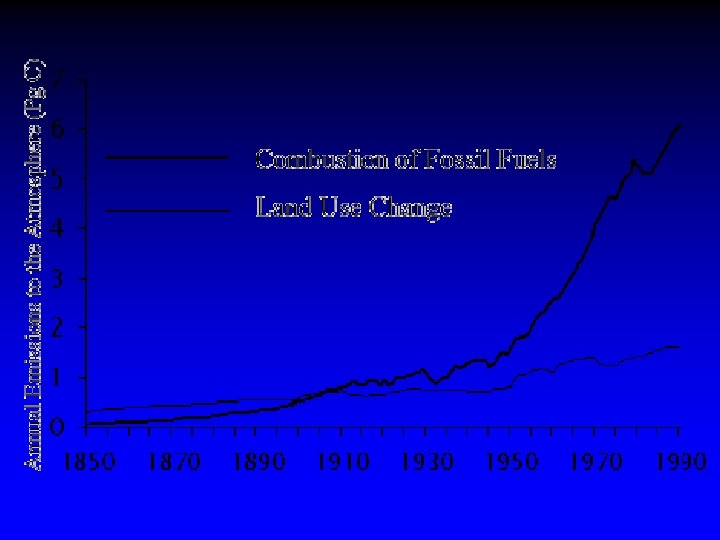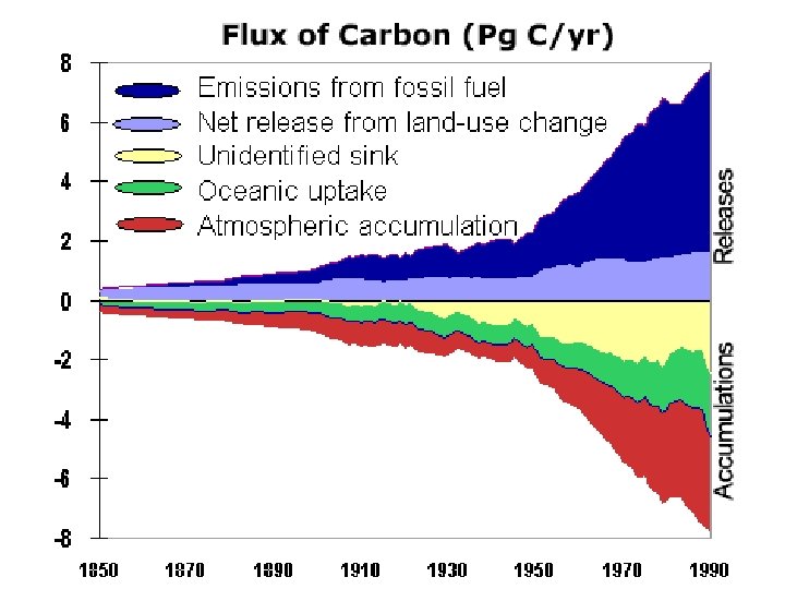 Atmospheric Increase in Global Carbon Cycle ä Emissions from Fossil + fuels ä Net emission from changes in land use ä subtract oceanic uptake ä subtract atmosphere uptake ä what is left missing carbon sink