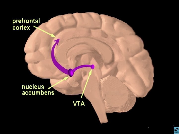 ADDICTION IS A BRAIN DISEASE, NOT A SYMPTOM SECONDARY TO A PSYCHIATRIC DISORDER Reward Pathway Median Forebrain Nucleus Accumbens Ventral Tegmentum Dopamine