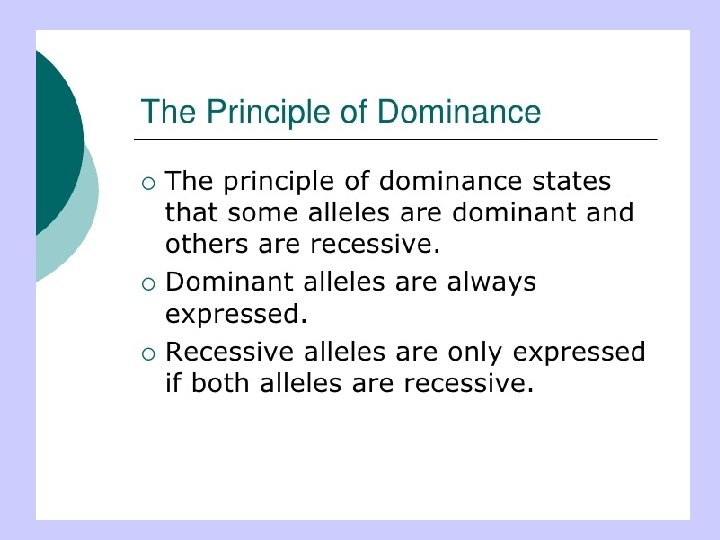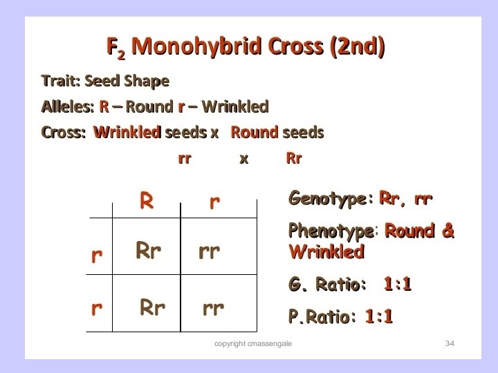 Mendel’s Observations • The observed trait is called dominant. • The dominant trait is represented with uppercase letters. • The hidden trait is called recessive. • The recessive trait is represented with lowercase letters.