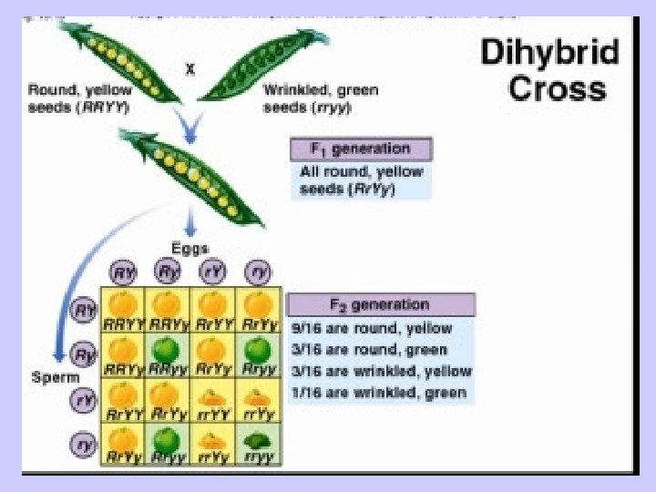 Law of Independent Assortment • Pairs of alleles separate independently during meiosis as long as they are on different chromosomes or far apart on the same chromosome. Ex. Seed shape and seed color