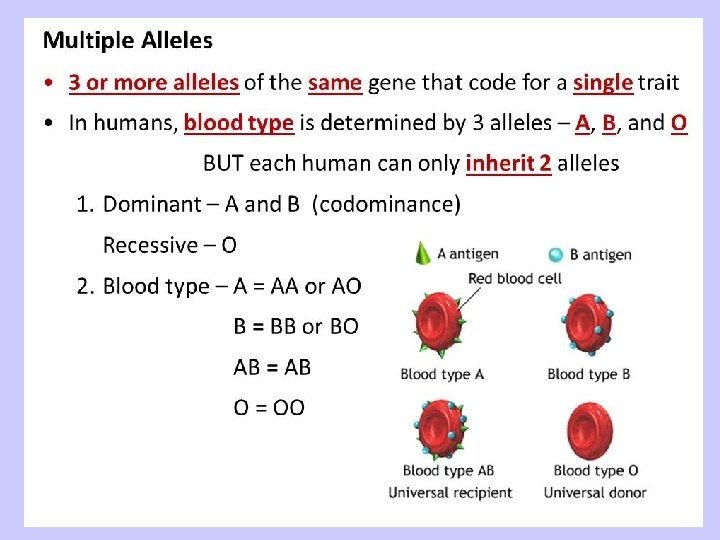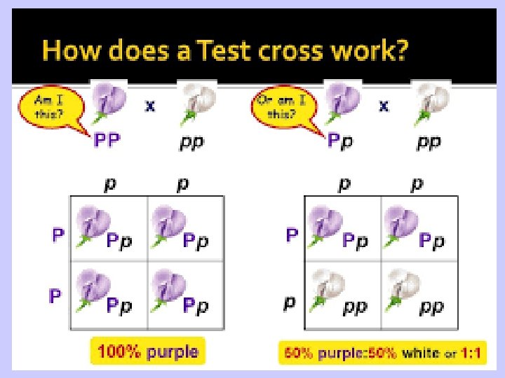 Genotype Determines Phenotype! • The physical appearance is called phenotype. • For each trait, we have two alleles, or versions of a gene. We get one allele from each parent. • Our set of alleles determines our genotype. • PP = genotype Purple = phenotype • pp = genotype white = phenotype