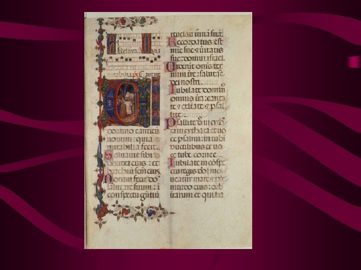 The History of Gregorian Chant • Named for Pope St. Gregory the Great (540604). • It is believed that Gregory did not write any chants, but instead organized the many different schools of chant into one coherent form by developing the Antiphonary (written music). • The Antiphonary is the oldest surviving form of written music.
