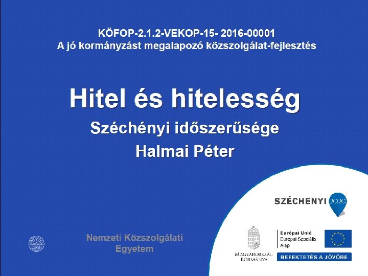 Hitel – hitelesség – bizalom 3. • Kritikus módon befolyásolja a hosszú távú tervek realitását. • A jövő fundamentális bizonytalansága miatt van szüksége valamely társadalomnak intézményekre. • Bizalmatlan környezetben a szabálykerülés elterjedtsége miatt az intézmények nem töltik be az egyének eligazítását szolgáló szerepüket, melynek révén csökkenne a bizonytalanság és lehetővé válna a távlatos tervezés. • A rendszerszintű bizalom léte, vagy hiánya kritikus jelentőségű ismétlődő gazdaságpolitikai döntések esetén. • Döntő a tág értelemben vett intézményi minőség, a közigazgatás integritása és hatékonysága.