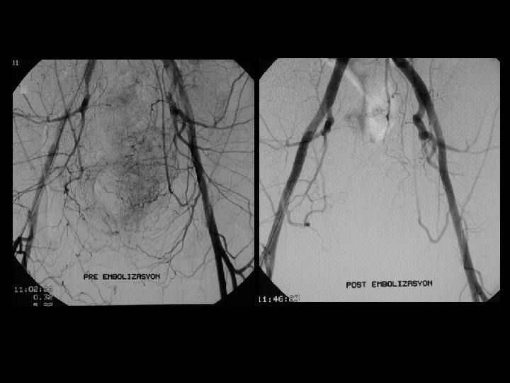 İliak arter enjeksiyonu Uterin arter enjeksiyonu Serviks ca; vaginal kanama; tümoral devaskülarizasyon ile kanama kontrolu; PVA ile emb.