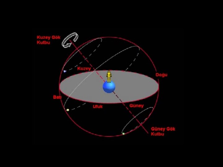 Kuzey Gök Kutbu Gök Küresi Kuzey P Zenit (Başucu noktası) Kuzey Kutup E Gök Ekvatoru E’ Yer Ekvatoru Güney Kutup Uf uk Çe m be ri Güney Nadir (Ayakucu noktası) P’ Güney Gök Kutbu