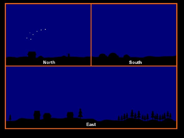 Ufuk dairesi ile gök ekvatorunun kesim noktaları gözlemcinin doğu ve batı noktalarıdır. Günlük hareket yönünde, ufkun altından üstüne geçerken rastladığımız kesim noktası doğudur. O halde tam ekvator üzerinde bulunan bir yıldızın doğduğu ve battığı noktalar, o yerin doğu ve batı noktalarını verir. Kutuplardan ve zenitten geçen meridyen düzlemi kısaca meridyen olarak bilinen düzlem ufuk dairesini güney ve kuzey noktalarında keser.