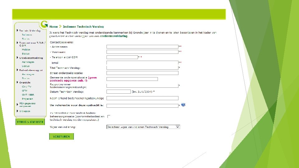 Technisch verslag art Conformverklaring Grondverzettoelating 175 VLAREBO De verplichting om het technisch verslag op te maken berust bij de initiatiefnemer grondwerken Bodembeheerrapport