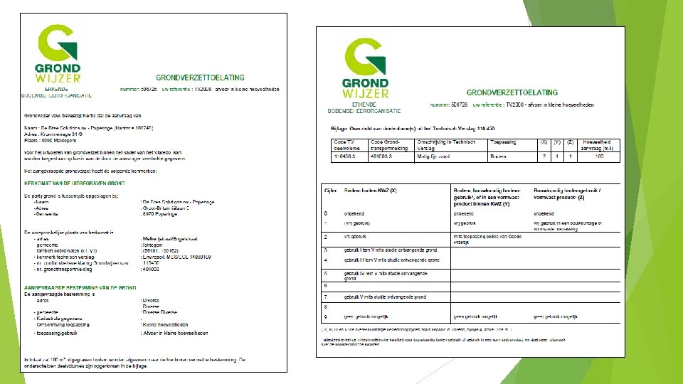 Grondverzettoelating Technisch verslag Conformverklaring Grondverzettoelating Nodig voor afvoer naar een andere locatie Nodig voor hergebruik binnen de werf Aan te vragen door de uitvoerder grondwerken vóór start verplaatsing/hergebruik Bodembeheerrapport