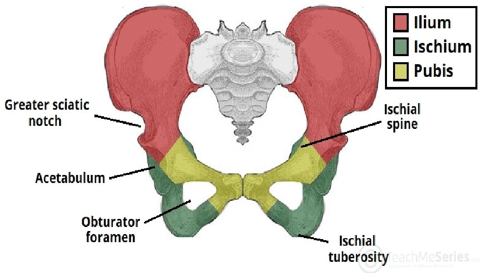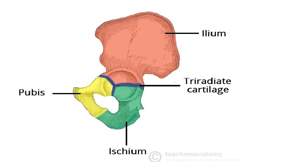 Composition of the Hip Bone • The hip bone is comprised of the three parts; the ilium, pubis and ischium. • Together, the ilium, pubis and ischium form a cup-shaped socket known as the acetabulum. The head of the femur articulates with the acetabulum to form the hip joint