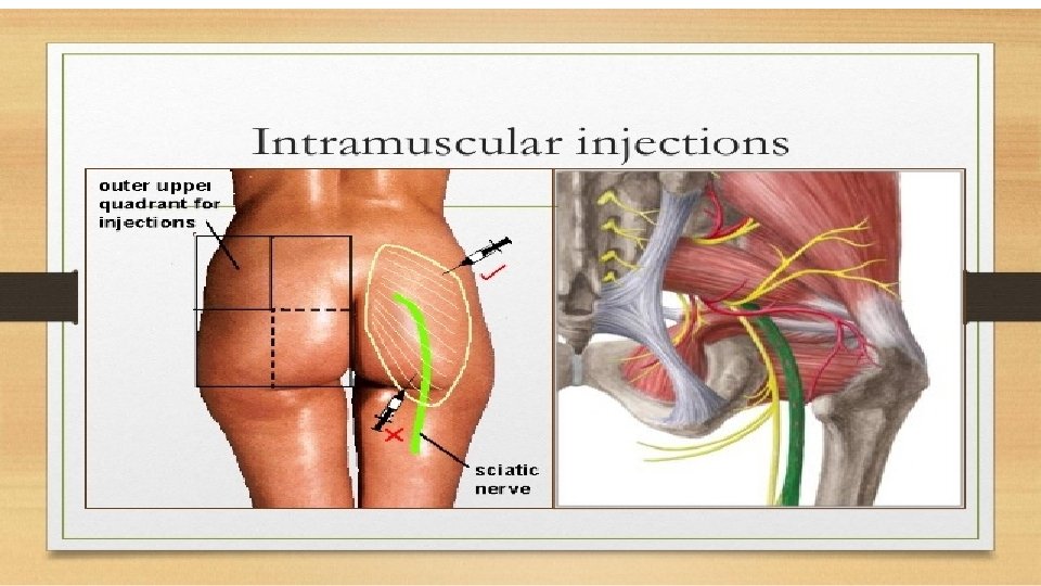 Site selection of injection v. Most common site of injection is in anterolateral thigh into vastus lateralis muscle. v. Chloroquine, diclofenic and oily injections are always to be injected in gluteal region.
