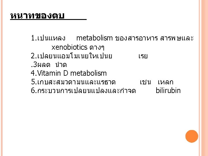 6. Hyperbilirubinemia (Total Bilirubin 0. 9 mg/dl ปกต 0. 0 -0. 4 mg/dl)