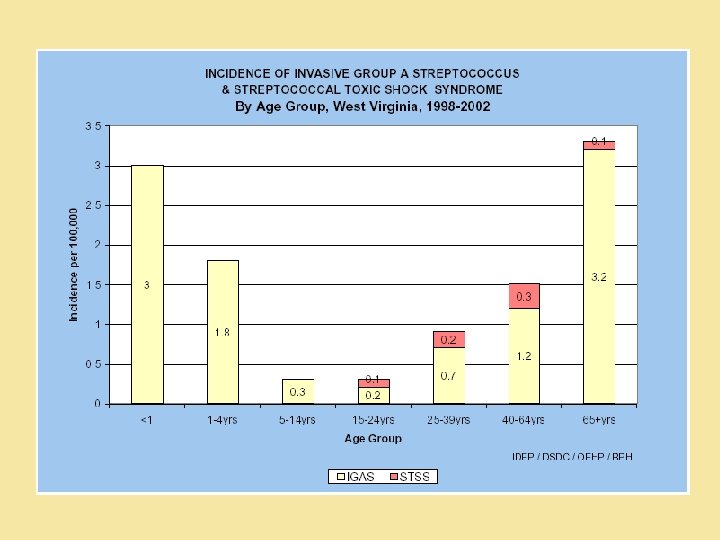 IGAS in Ontario, Canada NEJM, 1996; 335: 547 • Population-based surveillance, 1992 -3 in Ontario, Canada, N=323 patients: – 1. 5 per 100, 000 – Highest risk: • Very young, very old • 56% had underlying disease: – – – HIV Cancer Diabetes Alcohol abuse Chickenpox