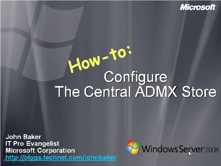 Notes • http: //technet. microsoft. com/enus/library/cc 709647. aspx • http: //technet. microsoft. com/enus/video/screencast-how-to-configure-thecentral-admx-store. aspx