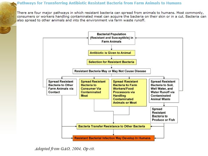Selection for Antibiotic Resistance Bacteria Antibiotic use in animals • Use: growth promoters and for prophylactic treatment • 70% of the antibiotics and similar drugs used in the US go into animal feeds • Sensitive bacteria killed over time and resistant ones survive www. keepantibioticsworking. com/