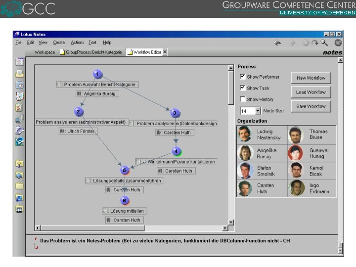 Projektabfolge am GCC universitäre Forschung 1990 kommerzielle Produkte Group. Office 1992 Group. Project Group. Flow 1994 1996 Group. Orga WAGS PAVONE Espresso 1998 Group. Process 2000 PAVONE Enterprise Office ONEStone Prozessware Lotus Domino Work. Flow